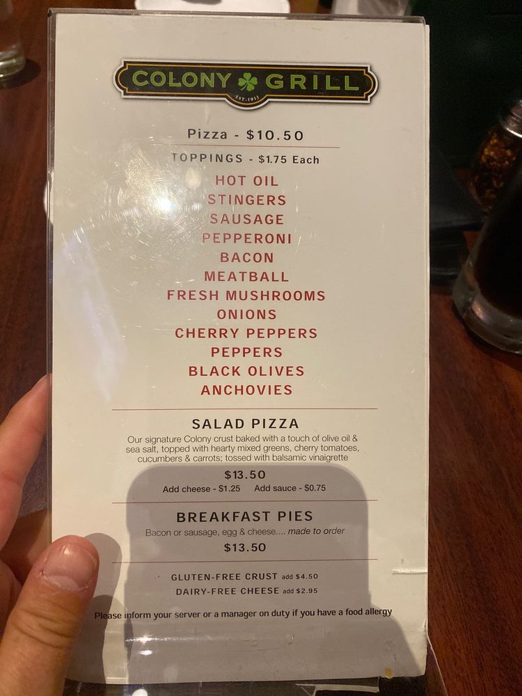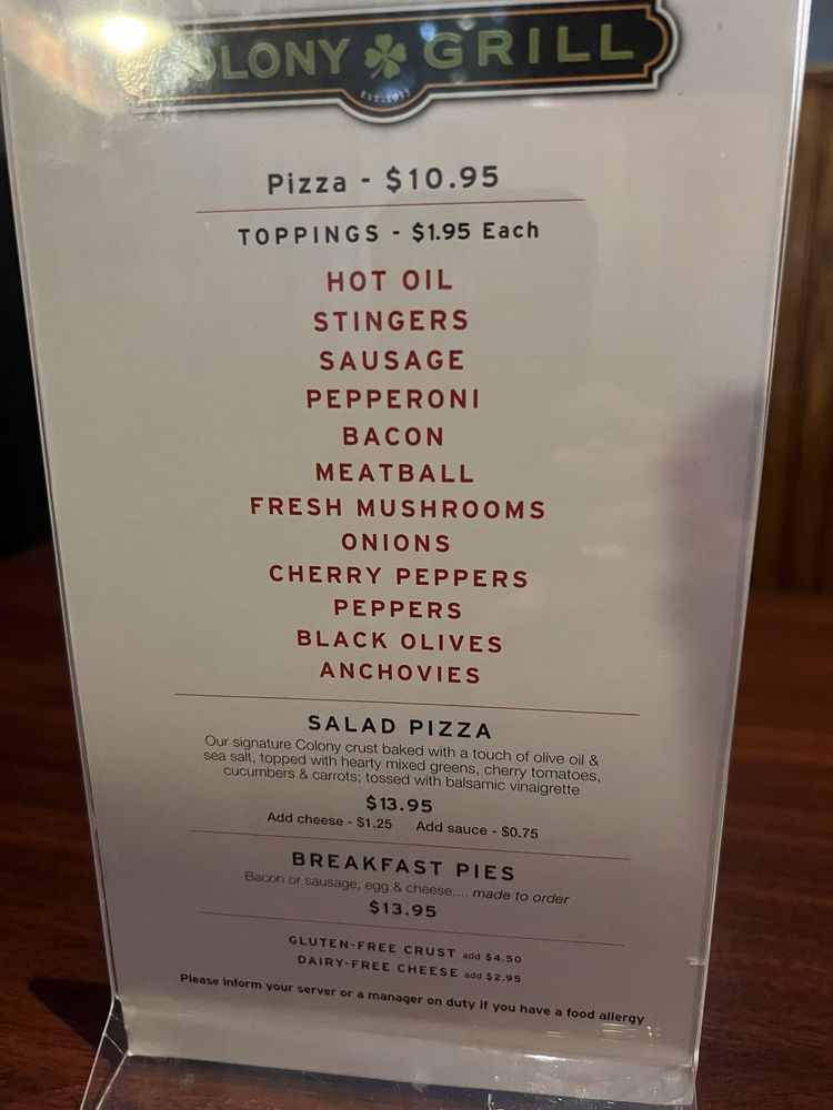 Colony Grill, located at 515 West Ave Norwalk, CT 06850, offers more than just pizza - it provides a dining experience. With options for delivery, takeout, reservations, and catering, Colony Grill is perfect for any occasion. The menu boasts vegan and vegetarian options, ensuring everyone can enjoy a meal. The atmosphere is casual yet inviting, making it ideal for groups, families, and even kids. The bar serves up delicious drinks, while the food is cooked to perfection using fresh ingredients. Customer reviews rave about the thin crust pizzas, particularly the hot oil pizza with cherry pepper, onion, & sausage. The attentive service and clean facilities add to the overall appeal of Colony Grill. If you're in the area, don't miss out on experiencing the best pizza and pub vibe at Colony Grill.